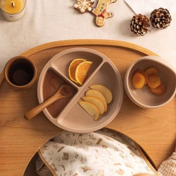 Le coffret comprend quatre pièces essentielles : un bol, un verre, une cuillère et une assiette. Chaque pièce est conçue pour répondre aux besoins spécifiques des jeunes enfants, rendant le moment des repas plus facile et plus agréable. Le bol est parfait pour les purées et les compotes, le verre aide votre bébé à apprendre à boire de façon autonome, la cuillère est douce pour les gencives et idéale pour les premières bouchées, et l'assiette est conçue pour les petites portions, encourageant la diversification alimentaire.