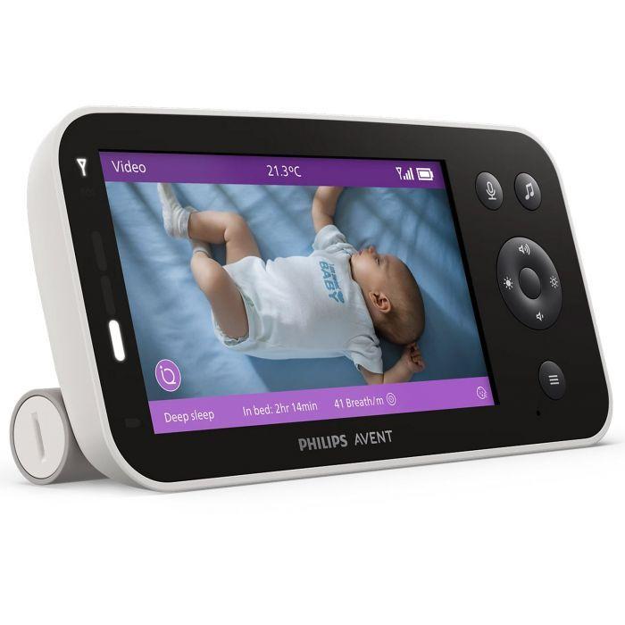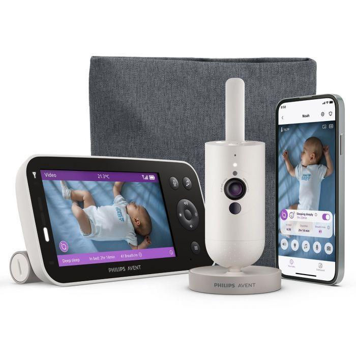 Procurez-vous le babyphone vidéo Sense IQ SCD971/26 de Philips Avent et bénéficiez des dernières technologies pour garder un œil sur votre bébé jour et nuit. Ce système avancé associe la surveillance de la respiration et du sommeil sans port, une unité parentale ultra-performante, ainsi que des fonctions intelligentes telles que la détection des pleurs avec traduction automatique. L'application Baby Monitor+ vous permet de rester connecté à votre enfant partout.