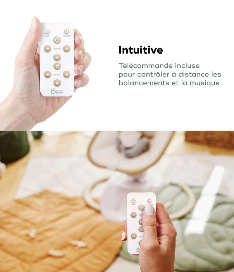 Utiliser la télécommande incluse pour régler la balancelle sans efforts. L'assise pivotante de la balancelle permet à bébé d'être toujours au cœur des moments en famille.
