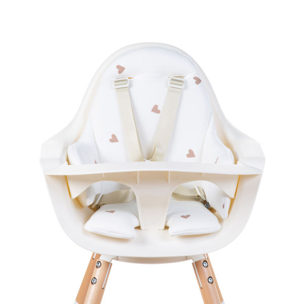 Coussin de chaise haute Jersey Hearts conçu pour les chaises hautes Evolu 2 et Evolu ONE.80° en jersey de coton de haute qualité. Le coussin de siège comporte des ouvertures pour insérer les sangles de la ceinture de sécurité à 5 points.
