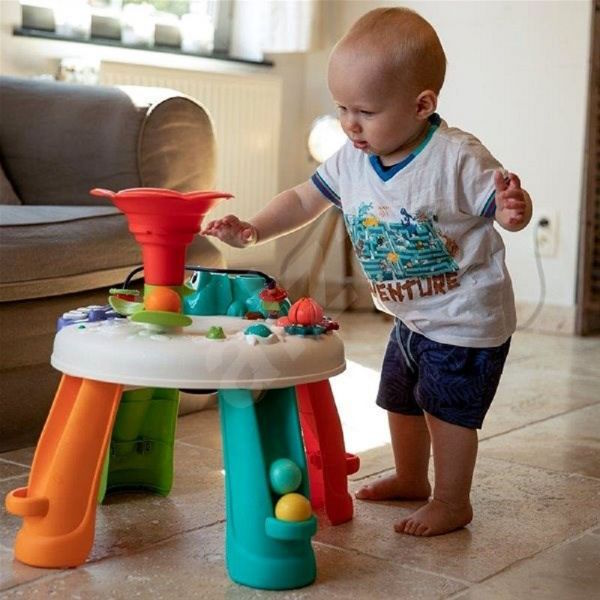 • Les nombreuses fonctions électroniques et mécaniques occuperont votre tout-petit pendant de longs moments. Il s’amusera avec le piano hyppo, les effets lumineux, le boulier, les jouets sonores, le jeu de balles avec une rampe ...