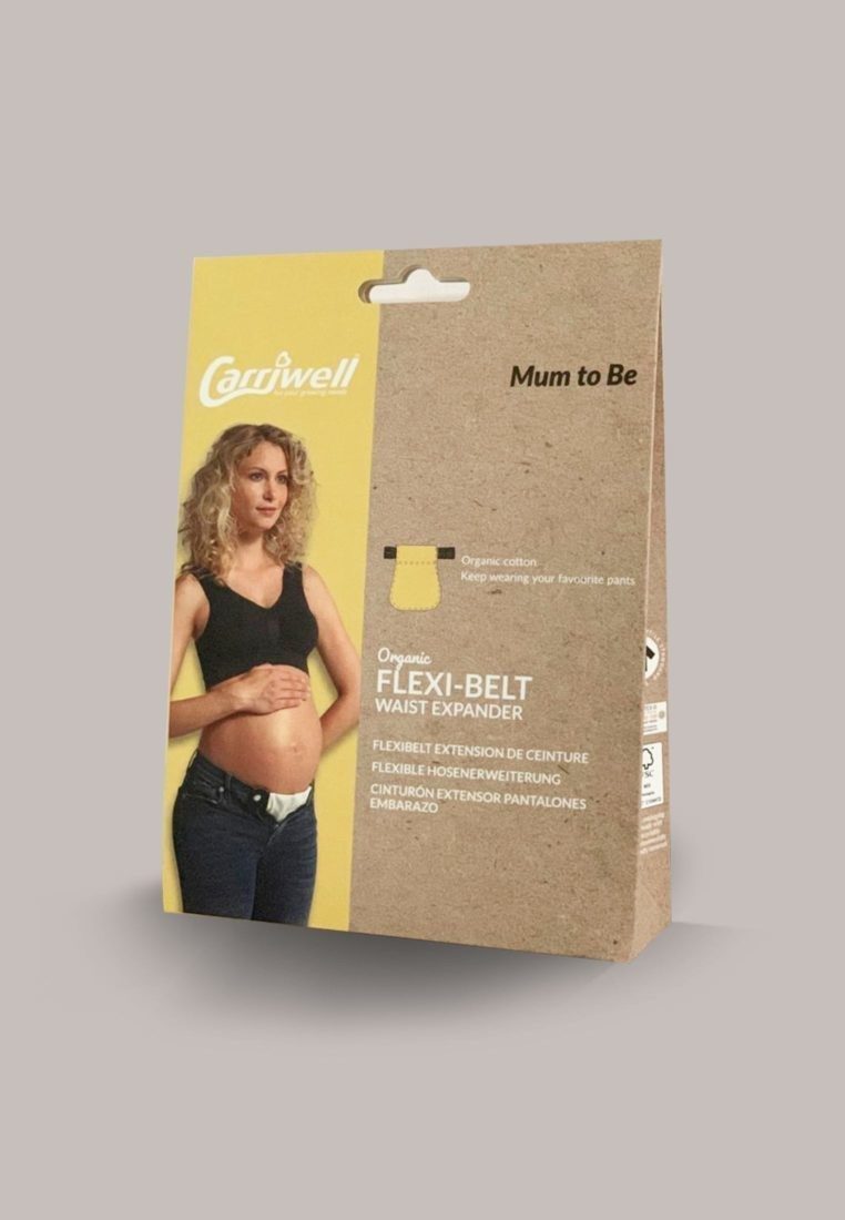 La Flexi-Belt en coton biologique de Carriwell transforme vos pantalons et jupes de tous les jours en vêtements de grossesse.