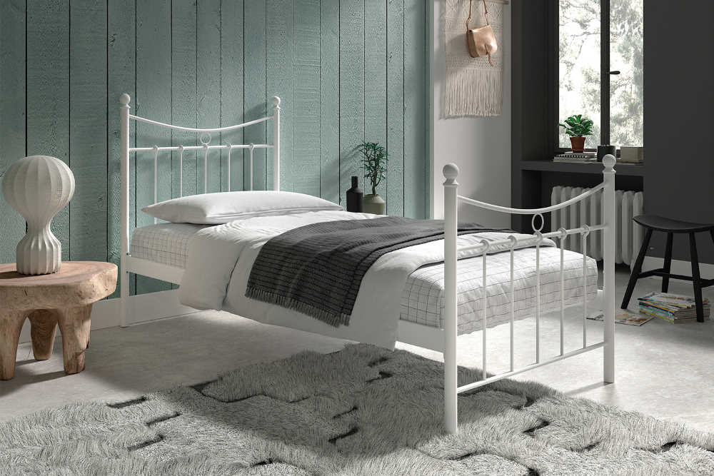 Ce magnifique lit en métal blanc moderne est sûr d’être un point culminant dans n’importe quelle chambre. Il a une structure métallique robuste qui offre une résistance exceptionnelle. La tête de lit incluse permet de l’appuyer facilement et lui donne un aspect chaleureux et élégant. Avec un lit de 90×200 cm, il offre un confort de couchage idéal pour passer d’agréables nuits. Il s’intégrera facilement dans de nombreux types de décoration grâce à ses lignes épurées. Sa couleur blanche apportera un charme tout particulier.