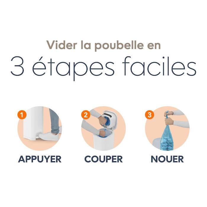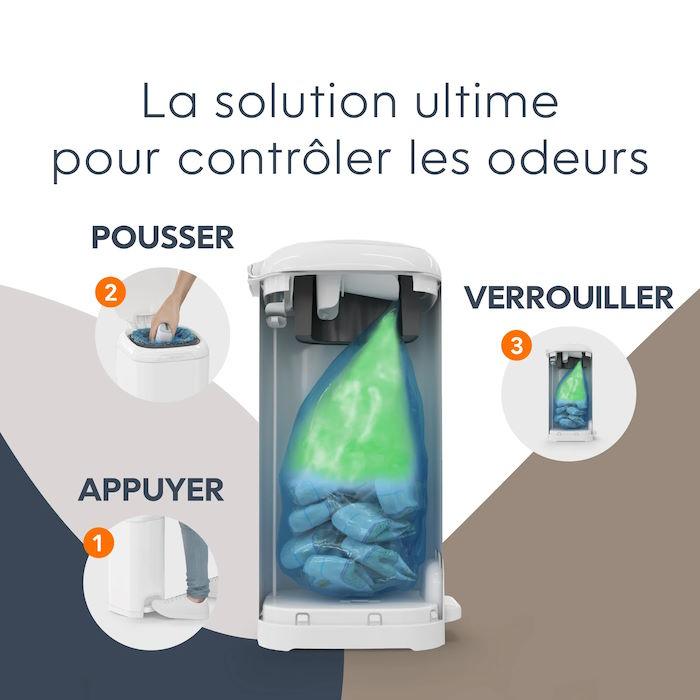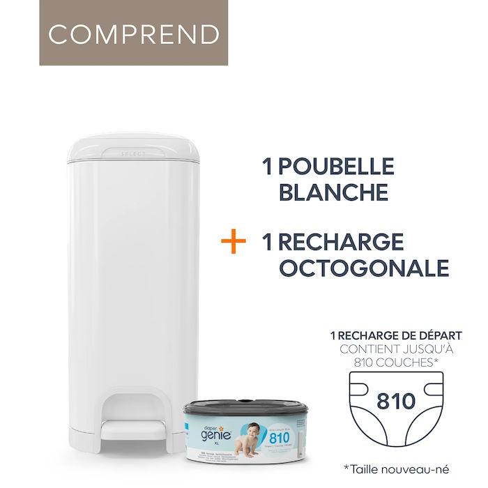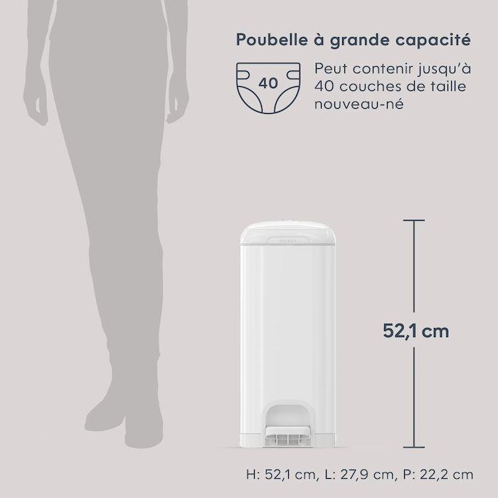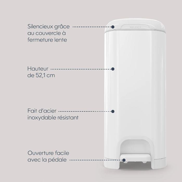 Découvrez la nouvelle poubelle à couches Diaper Genie Select conçue avec style et robustesse pour un ajout raffiné et pratique à votre chambre d'enfant. Fabriquée en acier inoxydable durable, la nouvelle Poubelle Diaper Genie Select est dotée d'une pince de blocage des odeurs Push N Lock, qui aide à contenir efficacement les odeurs des couches souillées.Pour plus de commodité, le système de disposition des couches Select présente une hauteur de 52,1 cm et une large ouverture, ainsi qu'une pédale pour une utilisation facile à une seule main. Notre nouvelle poubelle en métal peut contenir jusqu'à 40 couches pour nouveau-nés et inclut une recharge octogonale multi-épaisseurs dotée de notre technologie avancée Max Odour Lock. La recharge octogonale XL peut contenir jusqu'à 810 couches pour nouveau-nés, offrant ainsi une utilisation prolongée. La poubelle à couches Diaper Genie Select est disponible en 3 couleurs : Blanc Lily, Gris Foncé et Vert Sauge.