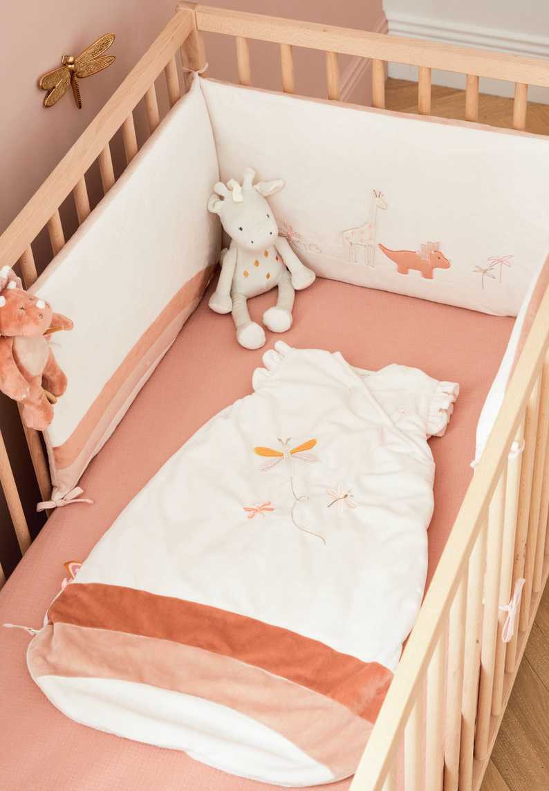 Le tour de lit écru et rose poudré en Veloudoux de la collection Popsie, Gigi & Louli garantit sécurité et douceur maximale à bébé grâce à son rembourrage. Il protège bébé des courants d’airs et lui évite de passer ses bras ou ses jambes à travers les barreaux.