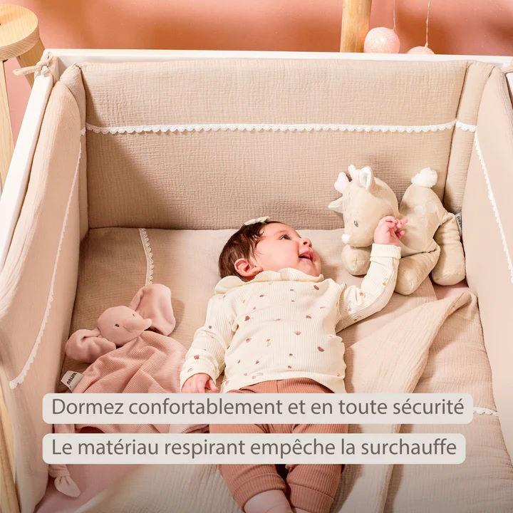 La housse de couette Nattou avec taie d’oreiller crée une atmosphère douce et confortable dans la chambre d’enfant. Elle est entièrement fabriquée en coton tétra respirant, léger et aérien, tout en dégageant chaleur et cocooning. La taie d’oreiller peut facilement se combiner avec d’autres accessoires de la collection Fanfan, pour créer une ambiance harmonieuse dans la chambre de bébé.