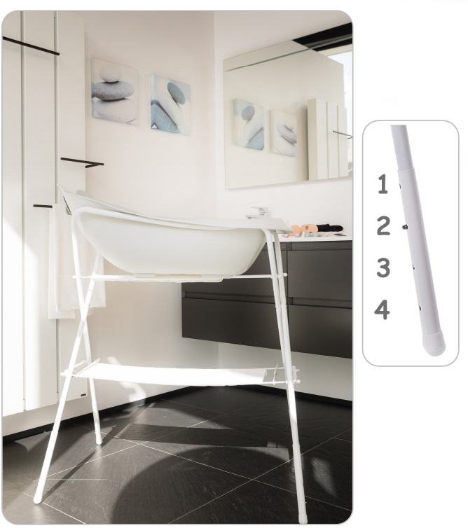 Ce support pour baignoire peut être réglé en hauteur, en 4 positions (99 à 112 cm), pour atteindre la hauteur optimale pour vos dos.