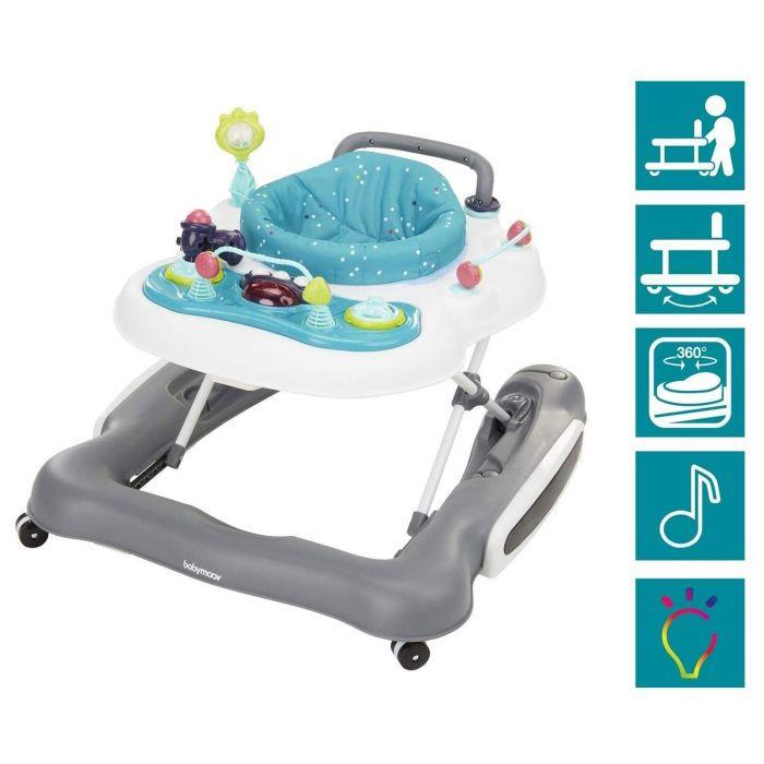 Le trotteur pousseur 5 en 1 de Babymoov vous offre un siège pivotant à 360°, un siège à bascule, un pousseur et une aire de jeu privée pour votre petit! Grâce à toutes ces posibilités, le trotteur grandit avec votre petit et est utilisé pendant un certain temps. Vous pouvez régler la hauteur en 3 positions et il est compact lorsqu'il est rangé. Ce chariot est équipé de 4 roues dont 2 directrices et de freins pour plus de sécurité!