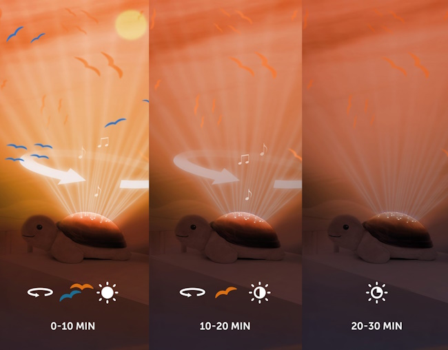 Aide votre petit à s’endormir en affaiblissant l’animation en 3 étapes. Le projecteur s’éteint automatiquement au bout de 30 minutes.