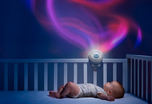Un projecteur Ourson Polaire et un projecteur de chevet avec une projection magique et dynamique d'aurores boréales pour créer une atmosphère merveilleuse pour le repos de bébé.