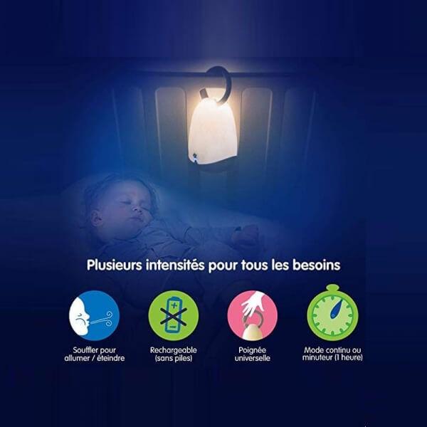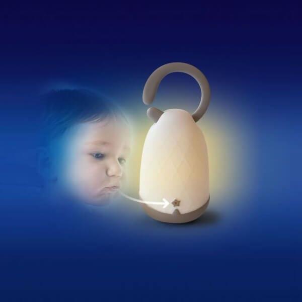 Découvrez cette belle veilleuse lanterne grise de la collection Lumiblo de la marque Pabobo. Magique, elle s'allume et s'éteint en soufflant dessus ! L'intensité de la lumière peut se régler, mais vous pouvez aussi activer le minuteur pour que la veilleuse s'éteigne au bout d'une heure.