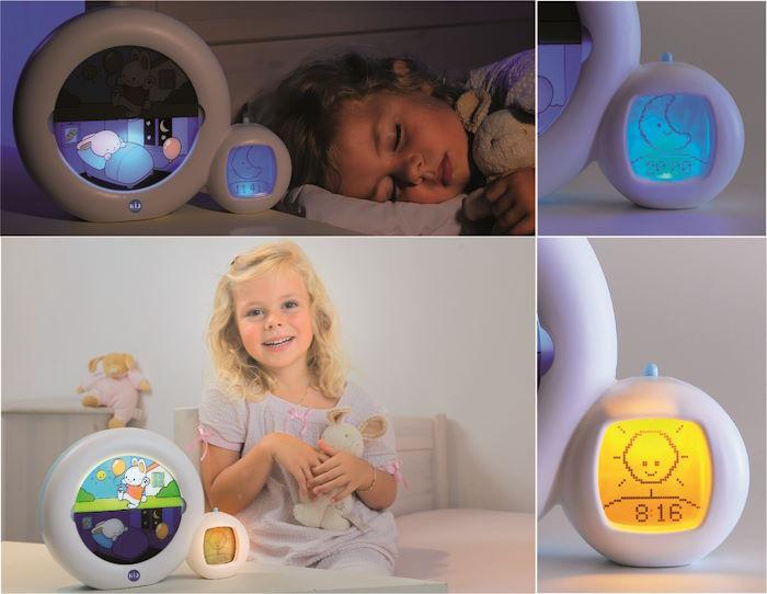 Plus tard vous pourrez l'utiliser comme réveil visuel grâce au petit lapin : quand le petit lapin est endormi, votre enfant sait qu'il est l'heure de dormir; à l'heure que vous aurez réglé, le petit lapin qui dort s'éteind et c'est le lapin qui joue qui s'allume, votre enfant sait alors qu'il peut se lever.