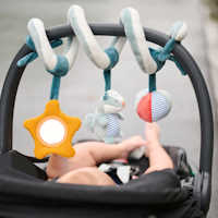 Cette spirale de jeu douce avec des activités amusantes est le compagnon de jeu idéal pour votre bébé. L'anneau de dentition ludique, la peluche Felix avec hochet intégré et la peluche avec miroir invitent à être saisis et offrent à votre tout-petit des heures de plaisir. Ainsi, la préhension et la perception auditive de votre bébé sont stimulées. La spirale de jeu peut être facilement fixée à un lit bébé, à un parc de jeux ou à un siège auto. Amusant à la maison et en déplacement, c'est également un cadeau original à offrir.