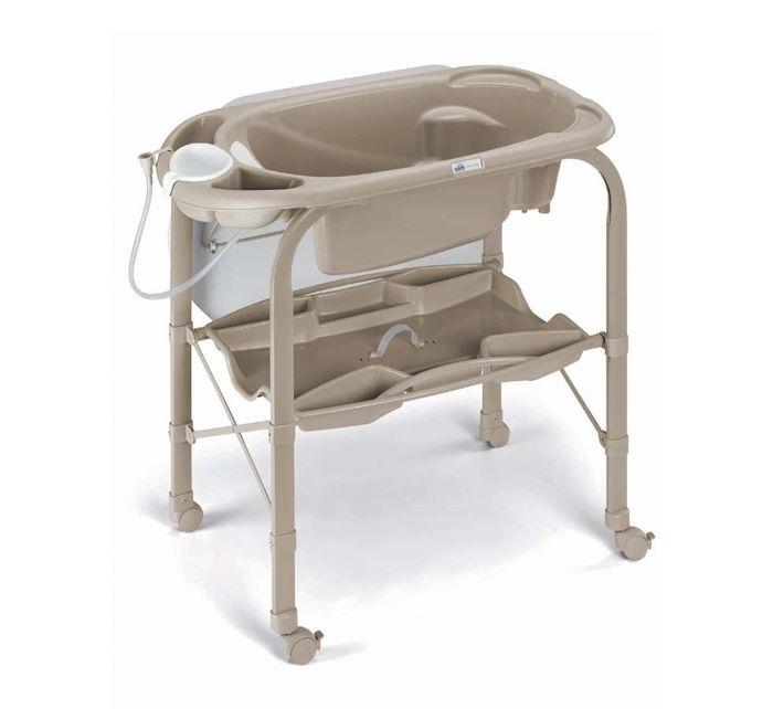 Table à langer souple avec système anti-basculement qui comprend une baignoire pour bébé avec 2 sièges anatomiques et antidérapants (un incliné pour les bébés de 0 à 6 mois et un siège avec accoudoirs pour les bébés de 6 à 12 mois)