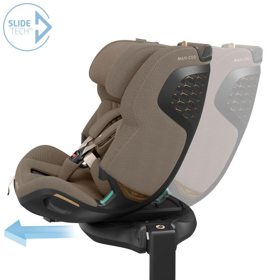 - Système SlideTech™ : le siège pivote et glisse vers vous pour installer votre enfant plus facilement dans la voiture.