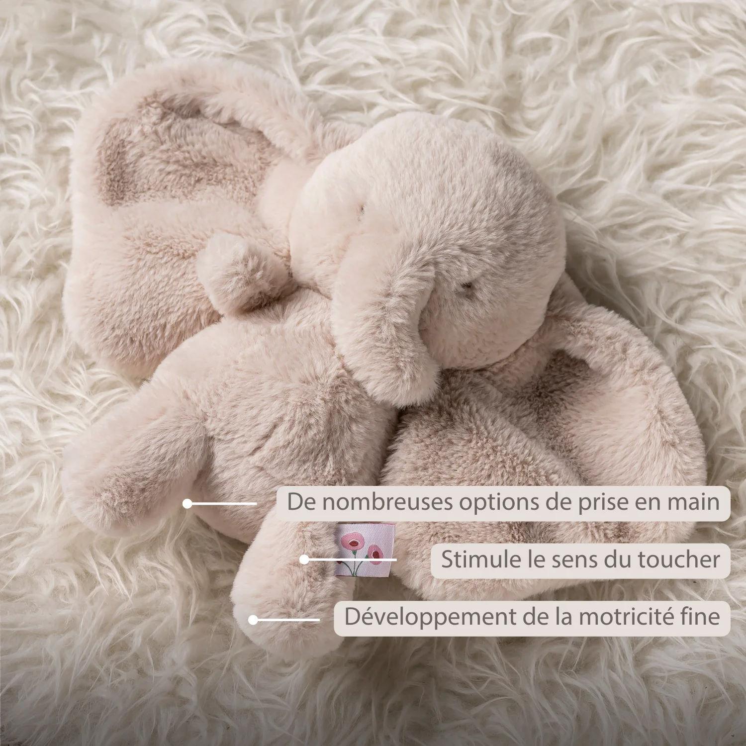 Peluche douce en forme d’éléphant, adaptée dès la naissance