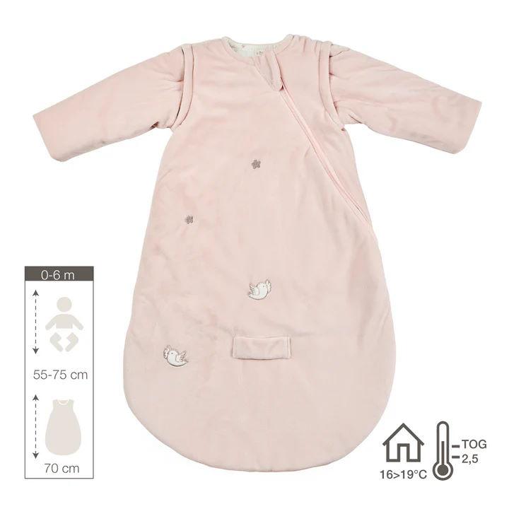 La gigoteuse 70 cm de Nattou associe élégance et confort pour les tout-petits. Avec son velours rose doux à l’extérieur, sa doublure en coton et sa valeur TOG de 2,5, elle offre la chaleur idéale et un sentiment de sécurité pour une température ambiante de 16 à 20 °C. Les manches amovibles permettent d’alléger la gigoteuse, tandis que la coupe ample garantit une grande liberté de mouvement. Grâce à la fermeture éclair latérale qui s’ouvre de bas en haut, le change et les soins deviennent particulièrement simples. De plus, la gigoteuse est équipée d’une ouverture pour harnais, permettant une utilisation sécurisée dans un siège-auto. Un accessoire de sommeil pratique et élégant qui garde votre bébé bien au chaud et en sécurité.