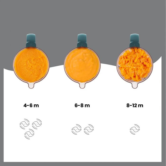 Ses 3 vitesses de mixage associées au récupérateur de jus de cuisson permettent d’ajuster la texture souhaitée, pour offrir à bébé le meilleur des purées et s'adapter facilement aux différentes étapes de la diversification alimentaire.