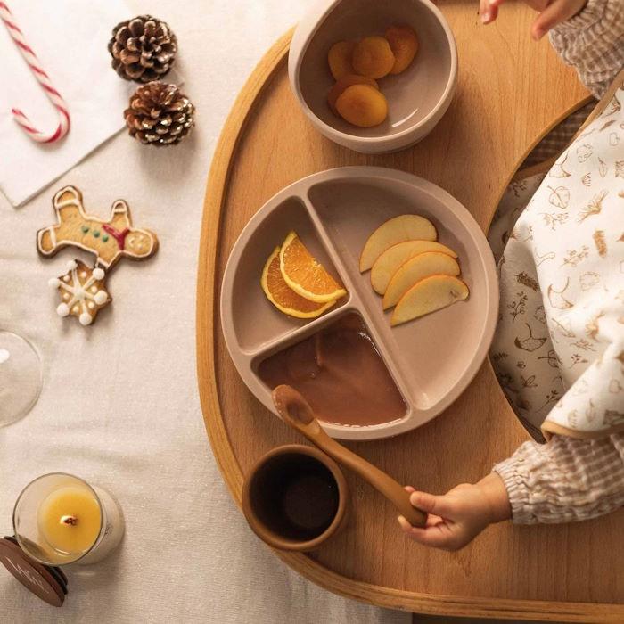 Le coffret comprend quatre pièces essentielles : un bol, un verre, une cuillère et une assiette. Chaque pièce est conçue pour répondre aux besoins spécifiques des jeunes enfants, rendant le moment des repas plus facile et plus agréable. Le bol est parfait pour les purées et les compotes, le verre aide votre bébé à apprendre à boire de façon autonome, la cuillère est douce pour les gencives et idéale pour les premières bouchées, et l'assiette est conçue pour les petites portions, encourageant la diversification alimentaire.