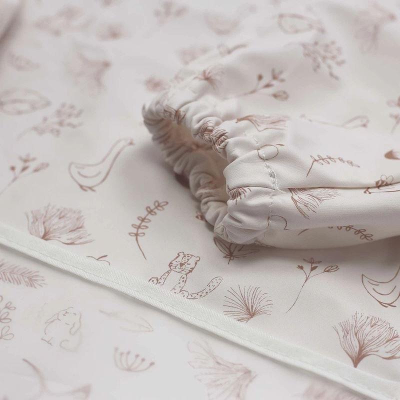 - Déperlant et récupérateur intégré : évite les taches et attrape les miettes pendant les repas.