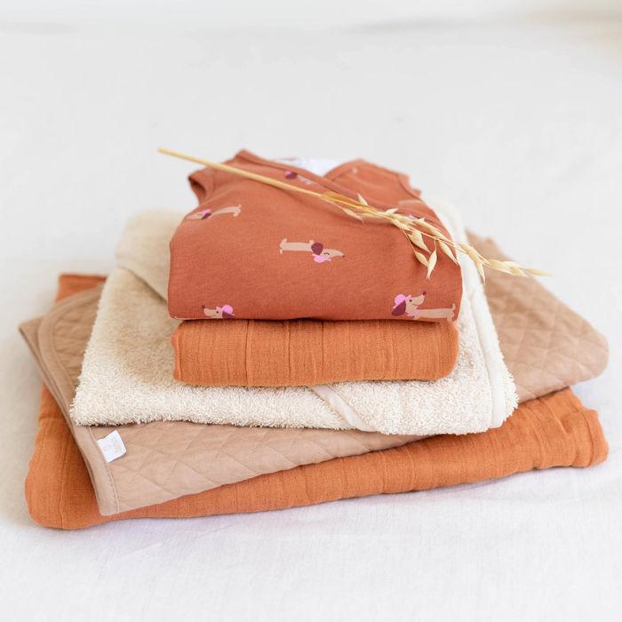 Douce et extra légère, la gigoteuse en mousseline de bambou et coton est adaptée à une température de chambre entre 22 et 27°C.