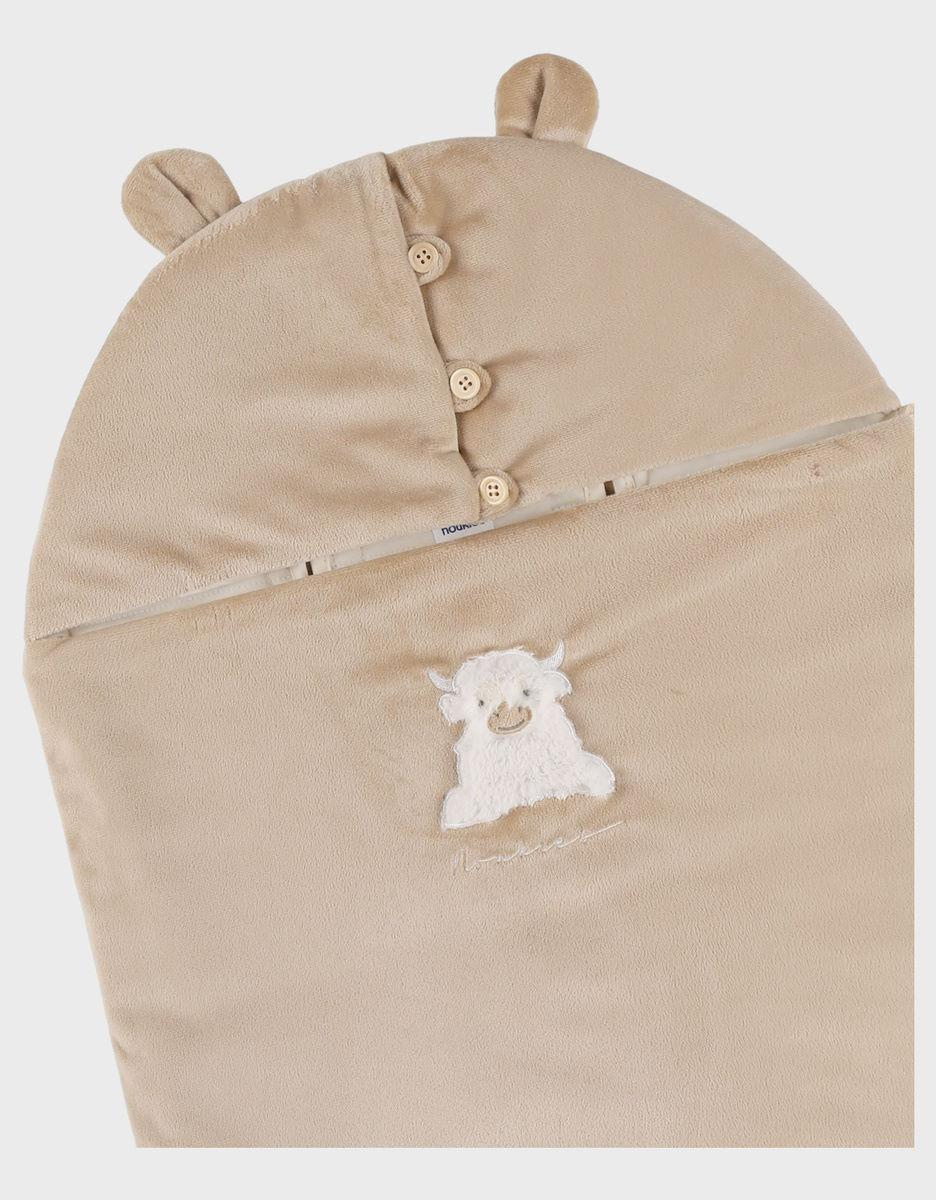 Nid d’Ange en Veloudoux® beige – Tissu exclusif, ultra-doux et moelleux, parfait pour les journées fraîches. Avec sa broderie Fluffy, sa couleur naturelle et apaisante, il entoure bébé d’un confort cocoon pour les sorties. Un indispensable pratique et élégant pour le quotidien des tout-petits.