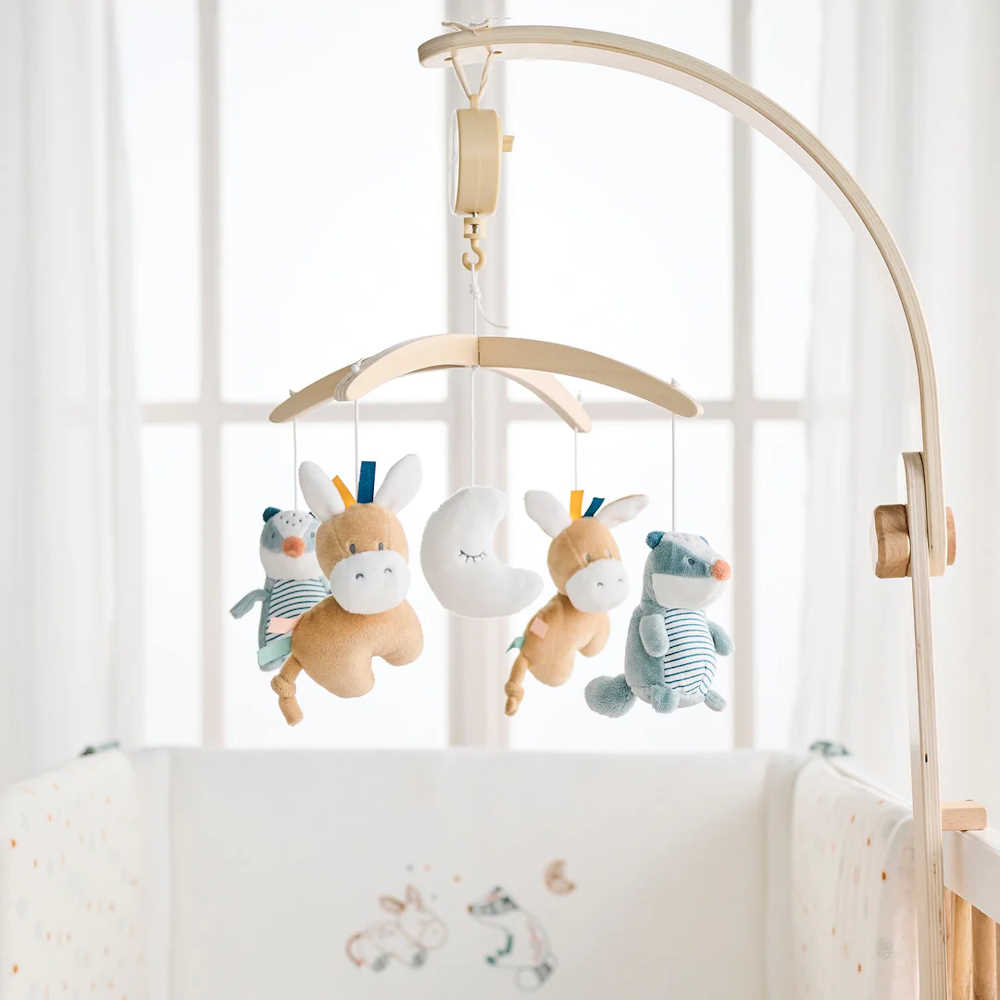 Laissez votre petit profiter des mélodies apaisantes du mobile musical pendant que le charmant blaireau Felix et l'âne joyeux Leo tournent doucement. Avec ces adorables petits animaux, le mobile n'est pas seulement un élément attrayant dans la chambre d'enfant, il favorise également la perception auditive de votre bébé grâce à la boîte à musique intégrée qui joue une douce mélodie "Le-La-Lu". Vous pouvez fixer ce mobile musical en toute sécurité et facilité sur le lit, le parc ou le landau de votre bébé. Toutes les figurines sont amovibles et peuvent être lavées en machine.