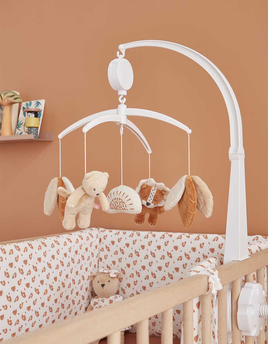 Pensez à retirer le mobile lorsque bébé commence à s'asseoir et à se lever afin d'éviter qu'il ne se suspende au mobile.