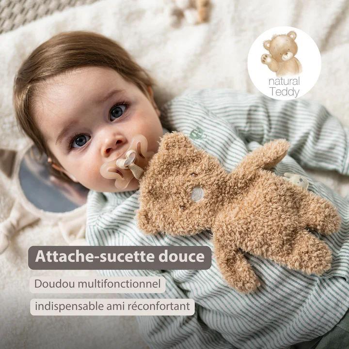 Le doudou ours pour sucette de Nattou est un doudou doux et multifonctionnel qui combine réconfort et praticité. Avec son velours et tissu teddy moelleux, il procure douceur et sécurité à votre bébé. Le cordon pratique garde toujours la sucette à portée de main. Léger et compact, parfait pour les petites mains et idéal comme cadeau de naissance.