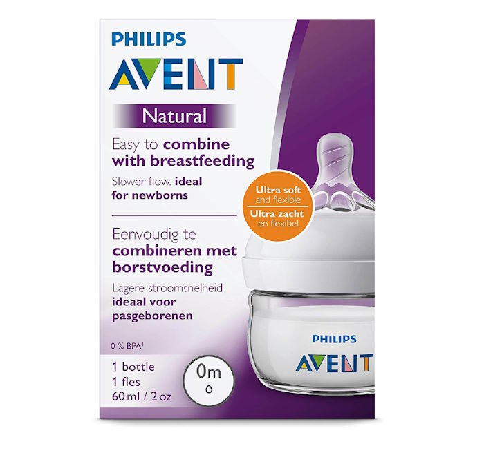 Le biberon Natural 60ml offre la quantité idéale de nourriture aux nouveau-nés.